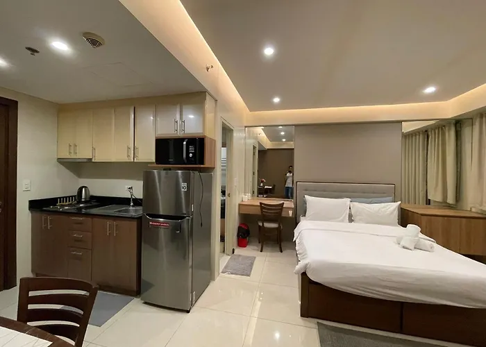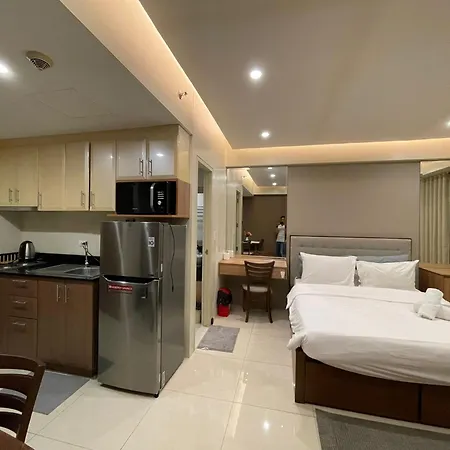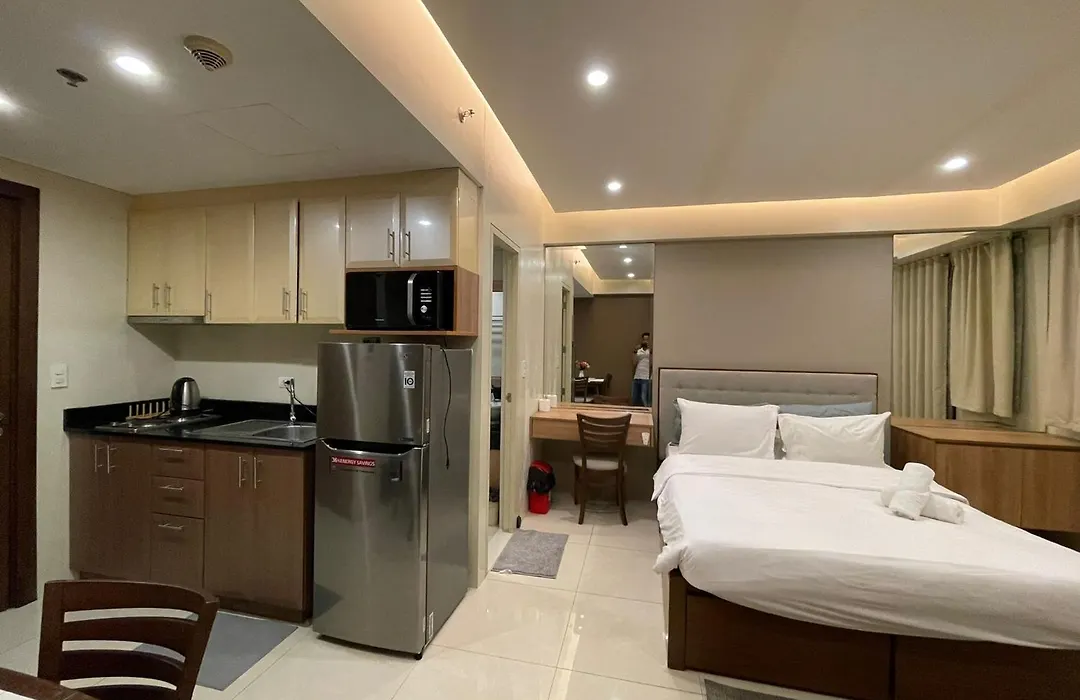 Your Home At One Palm Tree Villas Near Naia T3アパートには設備の整った台所が備わります。 このアパートはニノイ・アキノ国際空港から5キロメートルの場所にあります。